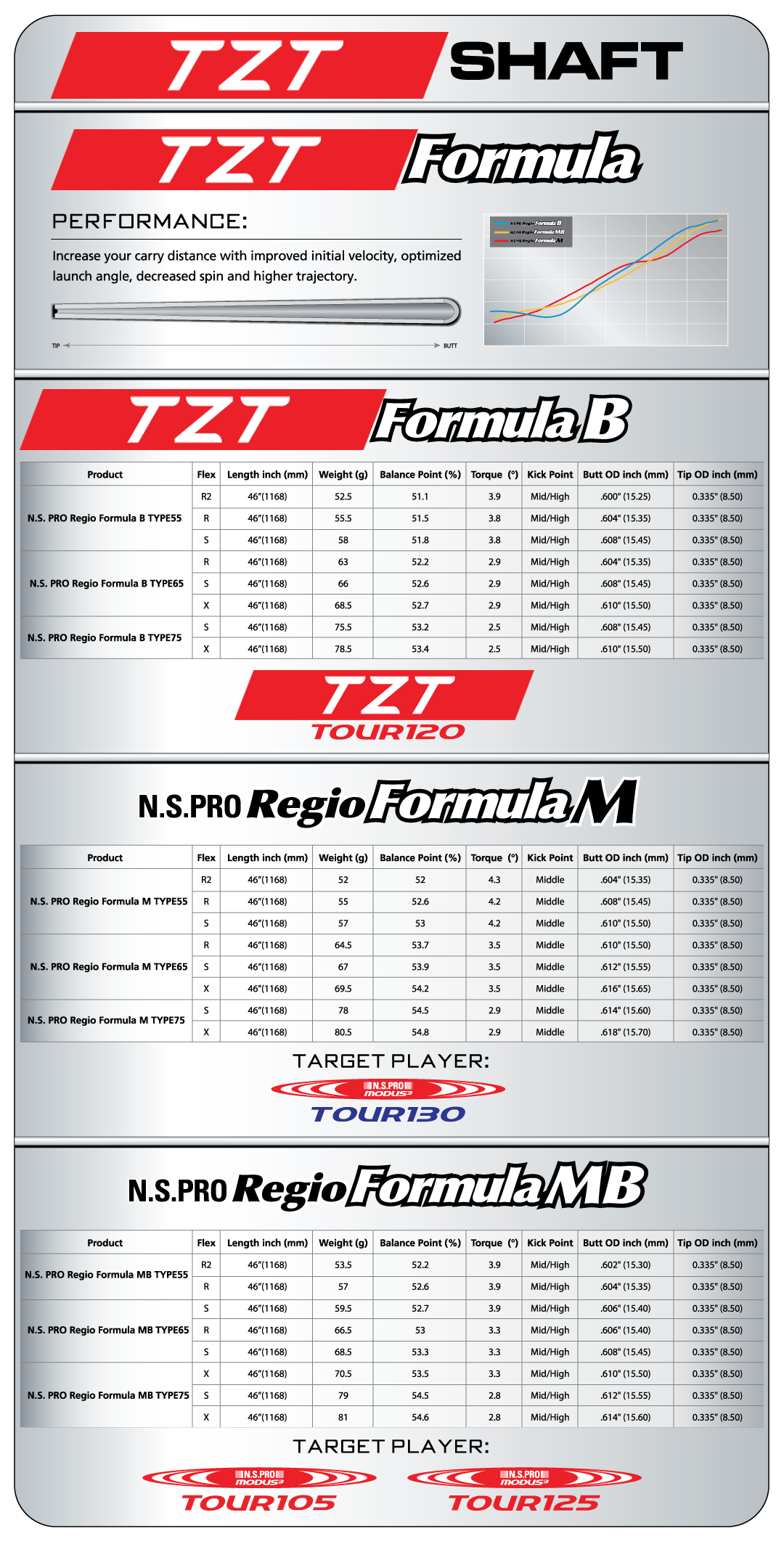 For current TZT MODUS³ Tour irons players, we are proud to offer a driver shaft model in the TZT Regio Formula series that matches the feel and performance of your MODUS³ irons shaft.