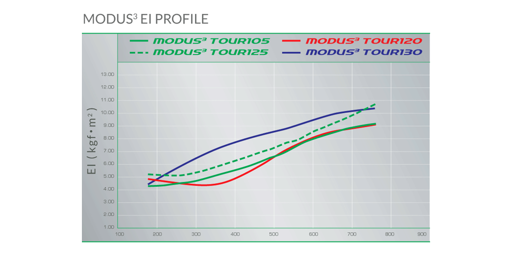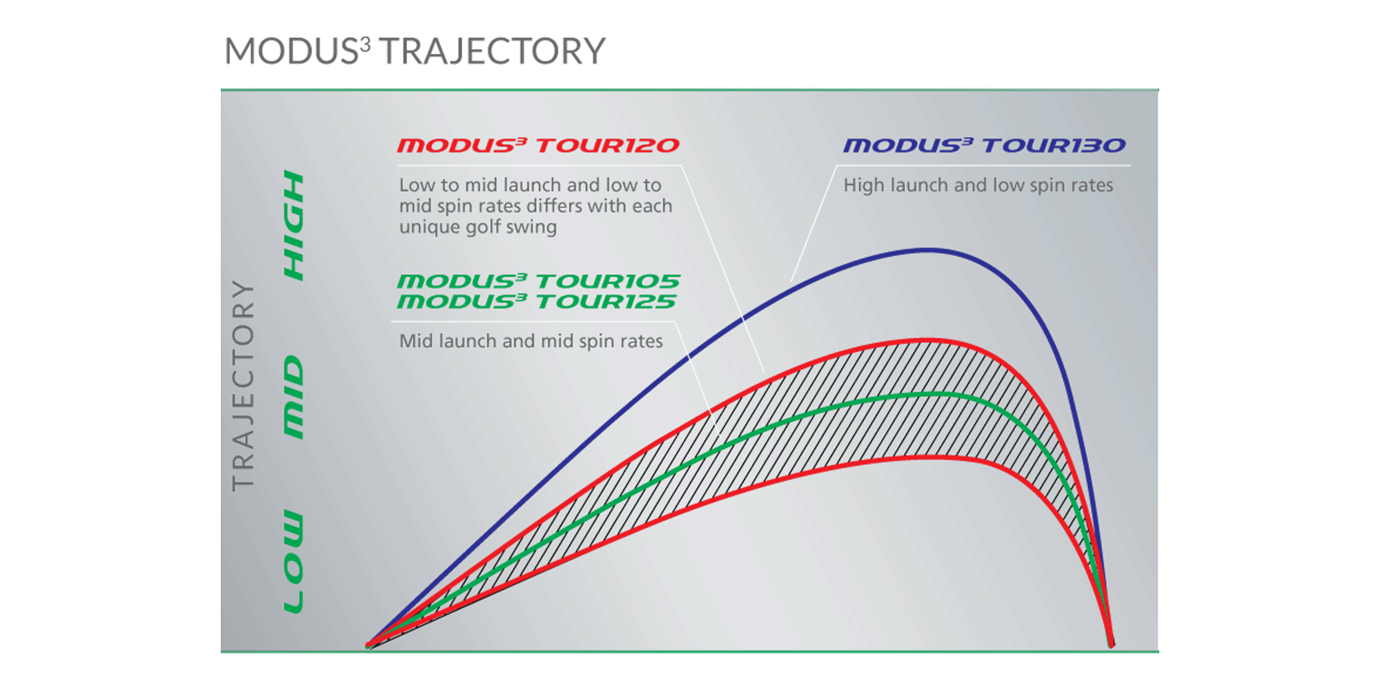 The all new TZT MODUS³ Tour 105: lighter weight to increase club head speed for longer distances, straighter shots, stronger trajectory, more consistent performance!