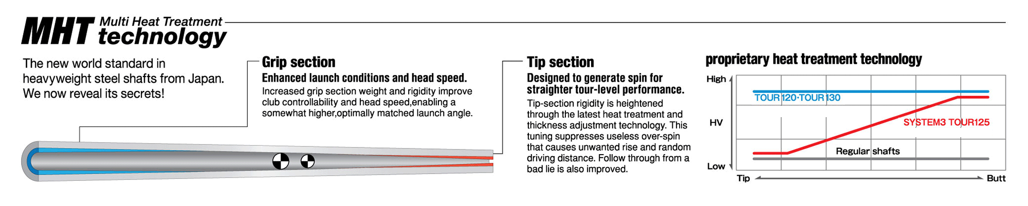 The TZT MODUS³ Tour 125 was released to the Asian market in 2014 and quickly became our most popular model on the men’s professional Japan Golf Tour. With a traditional design, the Tour 125 is designed for all skill levels. The MODUS³ Tour 125 is heat treated with our proprietary MHT Technology (Multi Heat Treatment) to improve feel and performance.